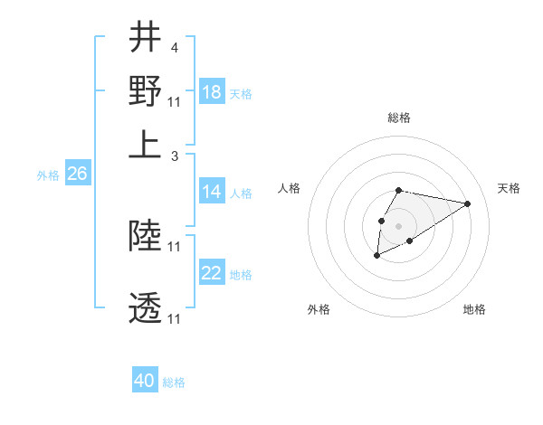 井野上 陸透さんを姓名の画数から五運を鑑定