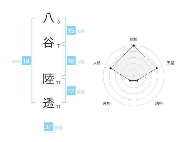 八谷 陸透さんの総格は37画の5点!