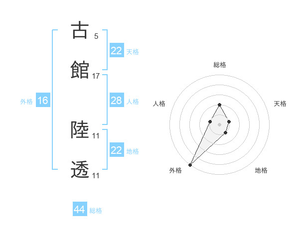 古館 陸透さんの総格は44画の2点!
