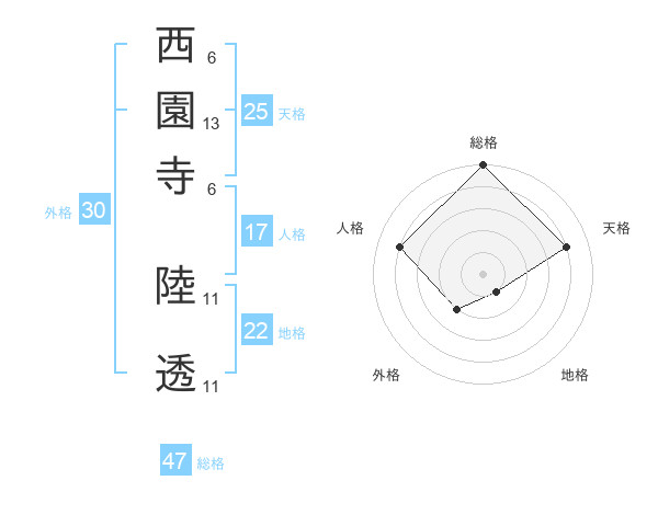 西園寺 陸透さんの総格は47画の5点!