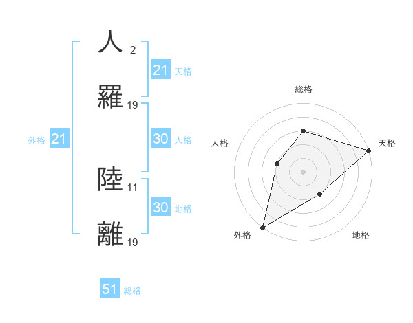 人羅 陸離さんを姓名の画数から五運を鑑定