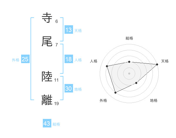 寺尾 陸離さんを姓名の画数から五運を鑑定