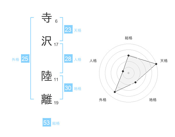 寺沢 陸離さんの総格は53画の3点!