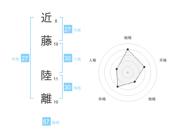 近藤 陸離さんを姓名の画数から五運を鑑定