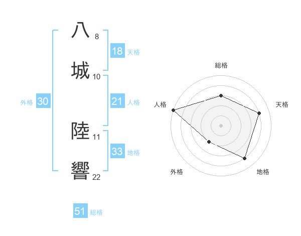 八城 陸響さんの人格は21画の5点!