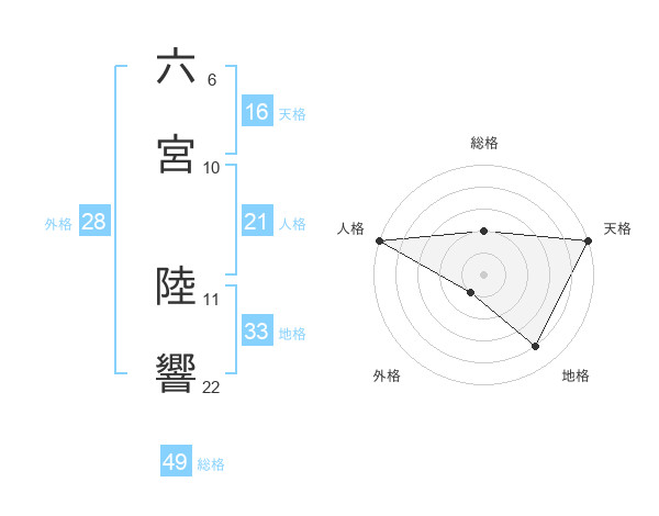 六宮 陸響さんを姓名の画数から五運を鑑定