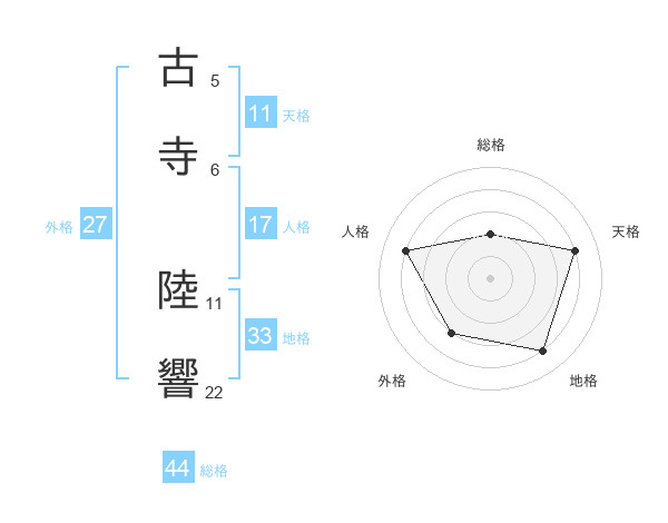 古寺 陸響さんの総格は44画の2点!