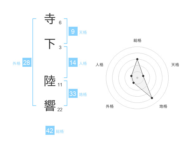 寺下 陸響さんの総格は42画の3点!