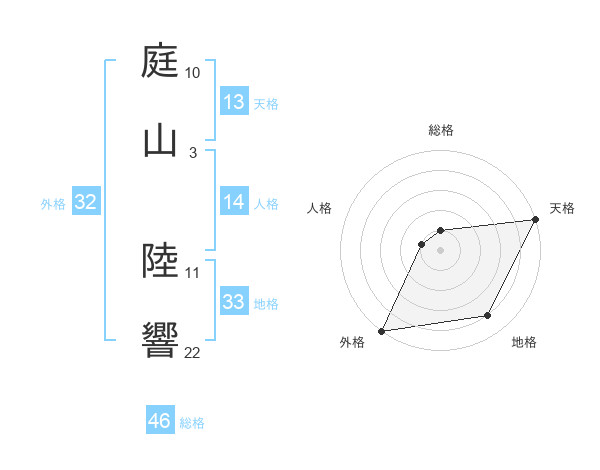 庭山 陸響さんの外格は32画の5点!