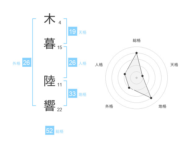 木暮 陸響さんを姓名の画数から五運を鑑定