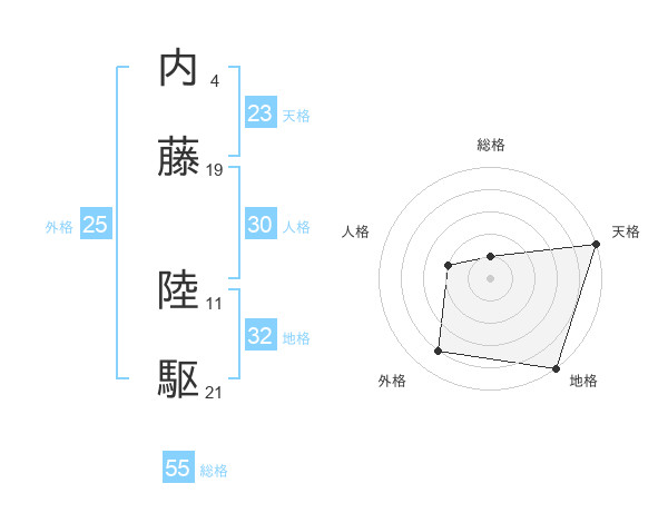 内藤 陸駆さんの総格は55画の1点!