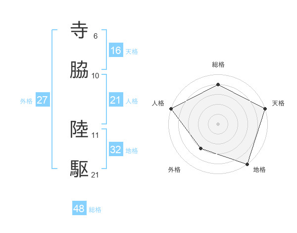 寺脇 陸駆さんの人格は21画の5点!