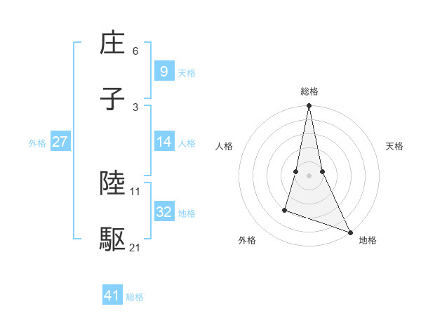 庄子 陸駆さんを姓名の画数から五運を鑑定