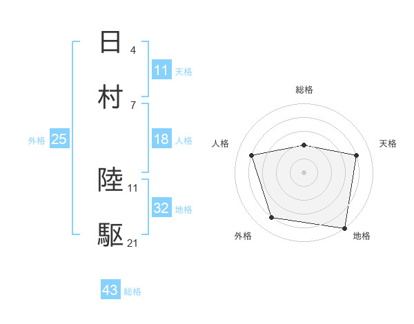 日村 陸駆さんの天格は11画の4点!