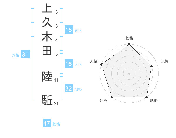 上久木田 陸駈さんの外格は31画の5点!