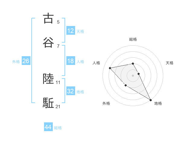 古谷 陸駈さんの総格は44画の2点!