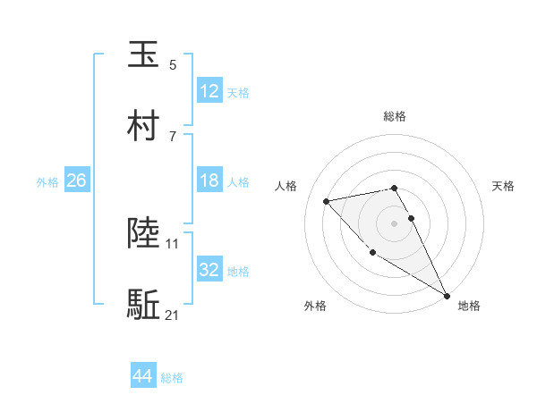 玉村 陸駈さんの総格は44画の2点!