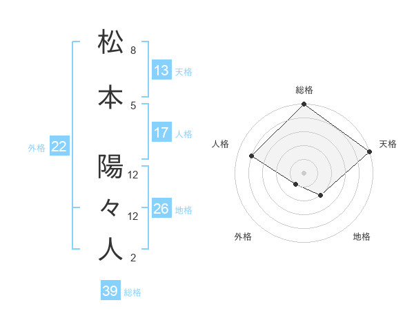松本 陽々人さんの総格は39画の5点!