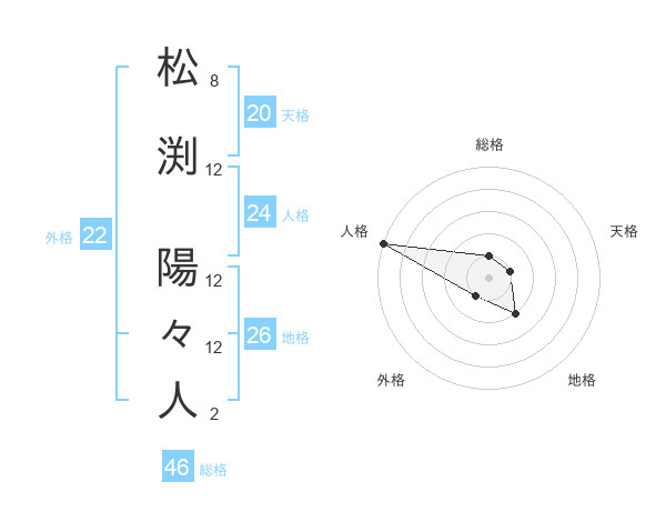 松渕 陽々人さんを姓名の画数から五運を鑑定