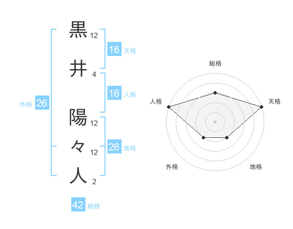 黒井 陽々人さんを姓名の画数から五運を鑑定