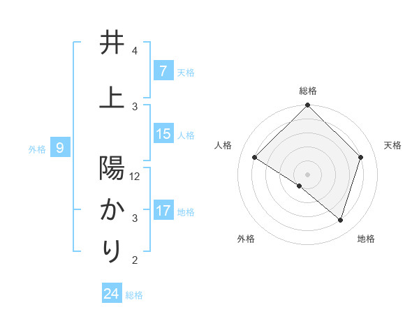 井上 陽かりさんを姓名の画数から五運を鑑定