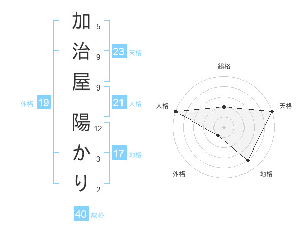 加治屋 陽かりさんの天格は23画の5点