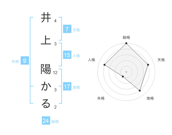 井上 陽かるさんを姓名の画数から五運を鑑定