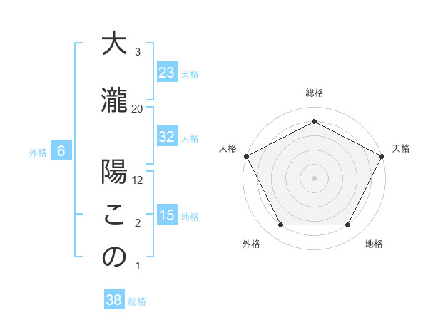 大瀧 陽このさんを姓名の画数から五運を鑑定