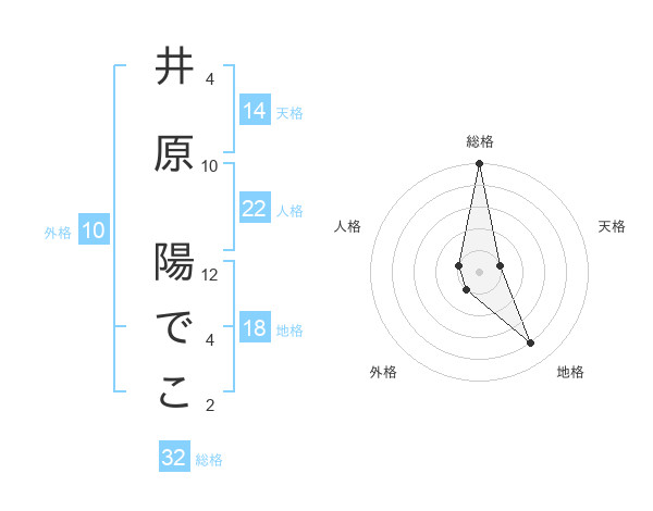 井原 陽でこさんを姓名の画数から五運を鑑定