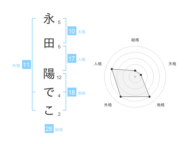 永田 陽でこさんを姓名の画数から五運を鑑定