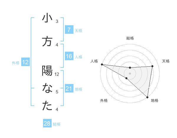 小方 陽なたさんを姓名の画数から五運を鑑定