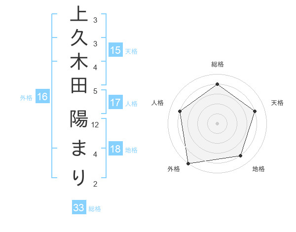 上久木田 陽まりさんを姓名の画数から五運を鑑定