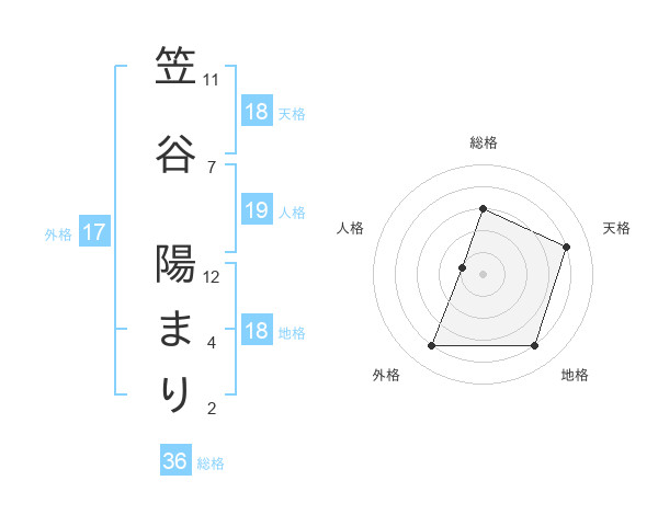笠谷 陽まりさんを姓名の画数から五運を鑑定