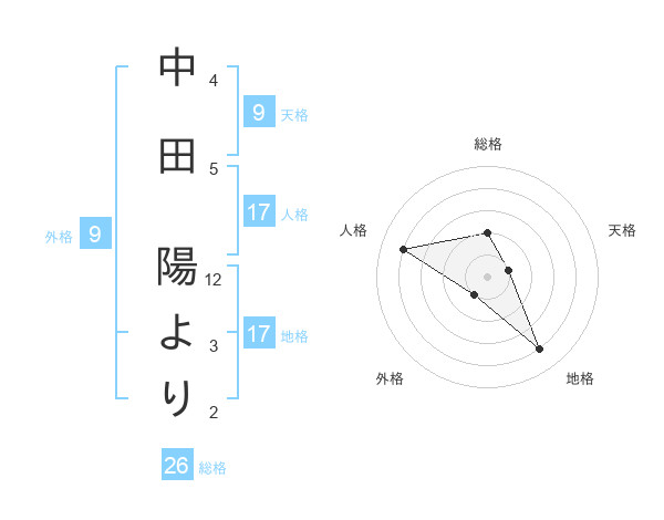 中田 陽よりさんの地格は17画の4点!