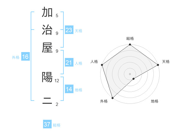 加治屋 陽ニさんの総格は37画の5点