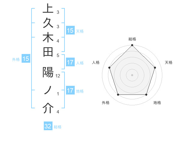上久木田 陽ノ介さんを姓名の画数から五運を鑑定