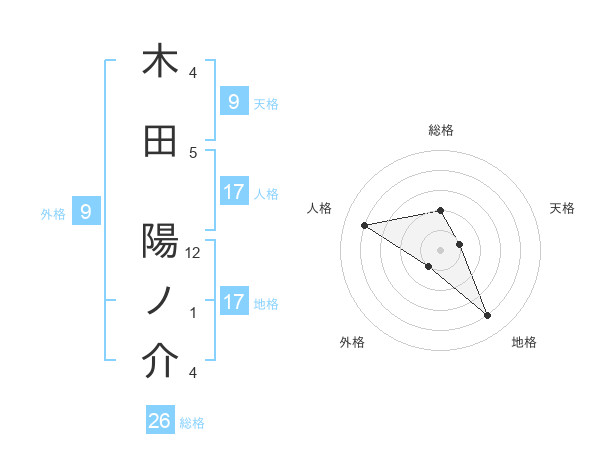 木田 陽ノ介さんを姓名の画数から五運を鑑定