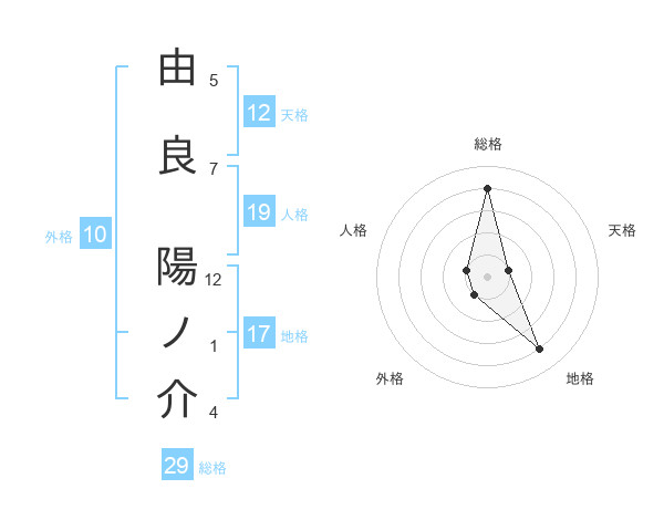 由良 陽ノ介さんの総格は29画の4点!
