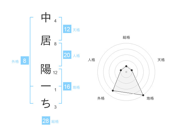 中居 陽一ちさんを姓名の画数から五運を鑑定