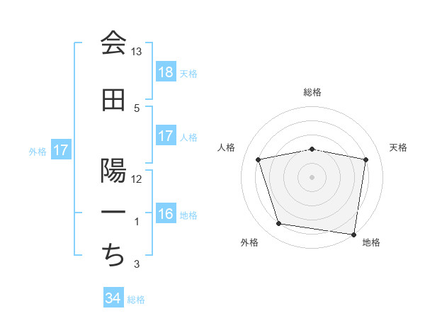 会田 陽一ちさんの天格は18画の4点!