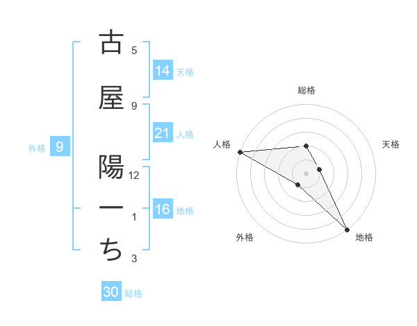 古屋 陽一ちさんの総格は30画の2点!