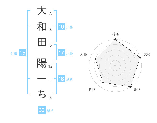 大和田 陽一ちさんの天格は16画の5点!