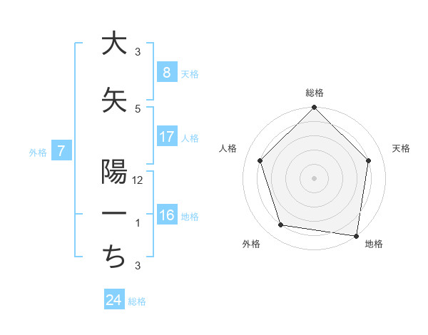 大矢 陽一ちさんを姓名の画数から五運を鑑定