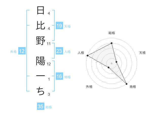 日比野 陽一ちさんを姓名の画数から五運を鑑定