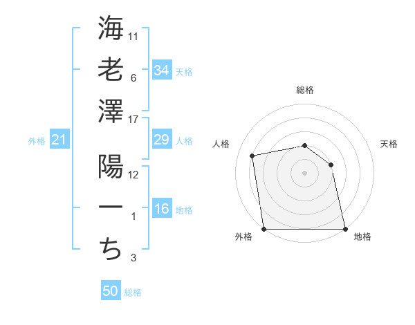 海老澤 陽一ちさんの外格は21画の5点!