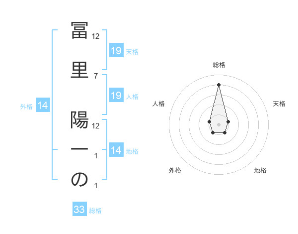 冨里 陽一のさんの天格は19画の1点!