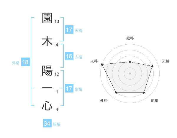 園木 陽一心さんの天格は17画の4点!