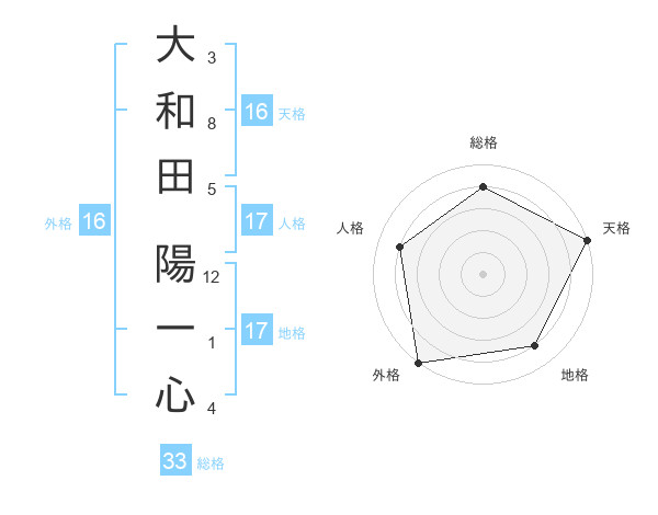 大和田 陽一心さんを姓名の画数から五運を鑑定