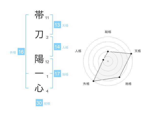 帯刀 陽一心さんを姓名の画数から五運を鑑定