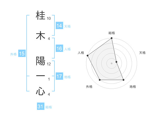 桂木 陽一心さんを姓名の画数から五運を鑑定